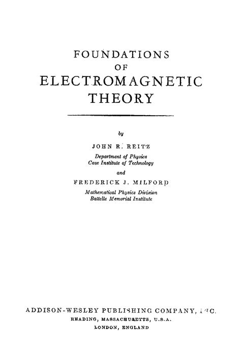 NXK - Read Online REITZ FOUNDATIONS OF ELECTROMAGNETIC THEORY SOLUTION MANUAL Epub Open Library